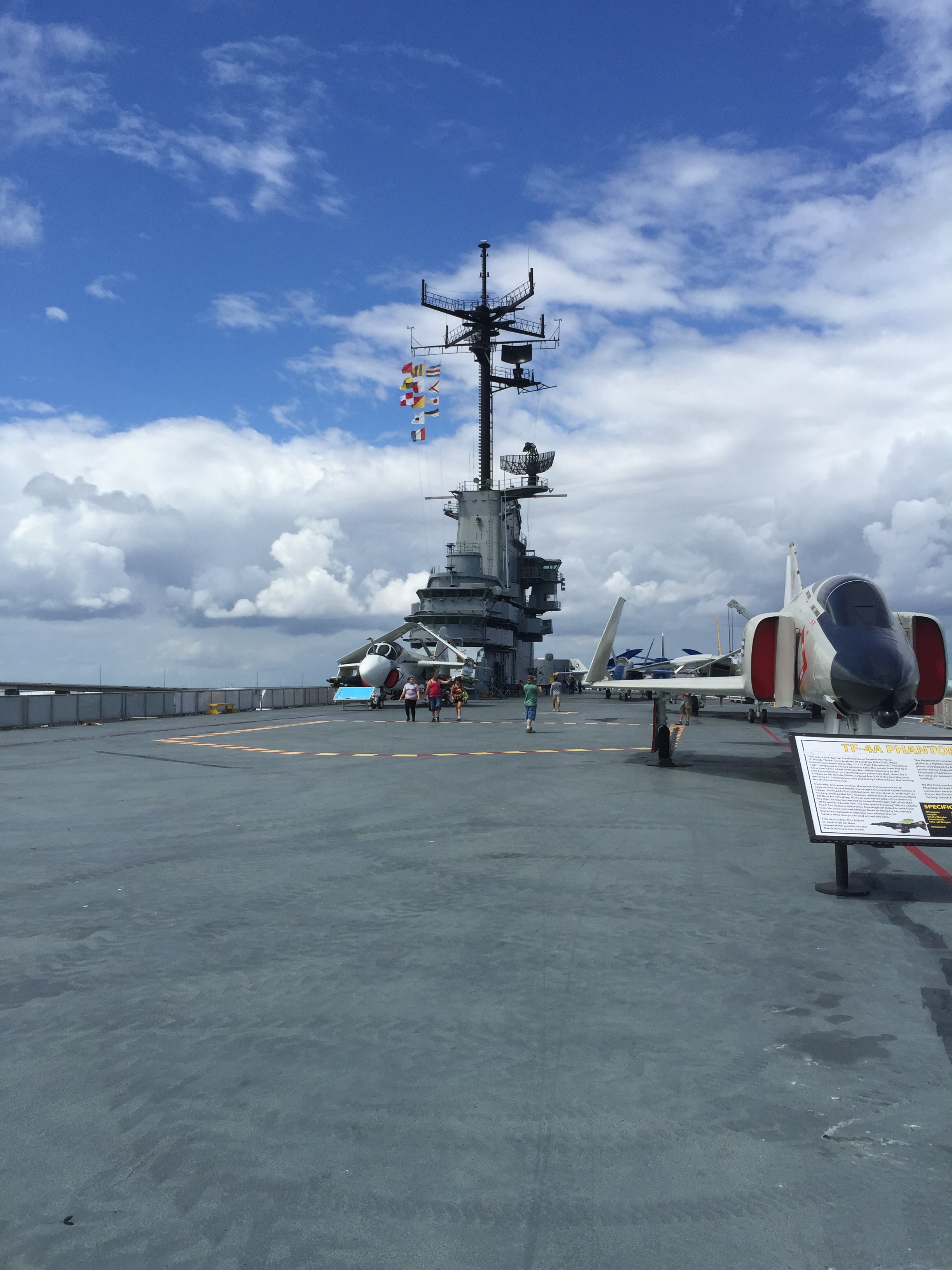 I went up to the flight deck and stood at the rails overlooking the ocean. The waters are a deep forest green there. In the distance someone rode a jet ski. I scanned the beach to see people fishing off the wave breaks, swimming, and enjoying their time at the beach in the shadow of a colossus. My feelings were bittersweet as I stood there.