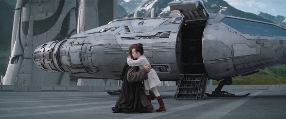 We might give this a pass, assuming in our minds that several days have passed since her duel with Vader. If that were the case, there are still some things we don’t see and are never mentioned. How did she heal herself of what was (presumably) a mortal wound with no resources at the ready? Once she did that, where did she find a ship with the range to get her off planet? The time in hyperspace is shown later to take almost no time at all, so I’m not counting that.
