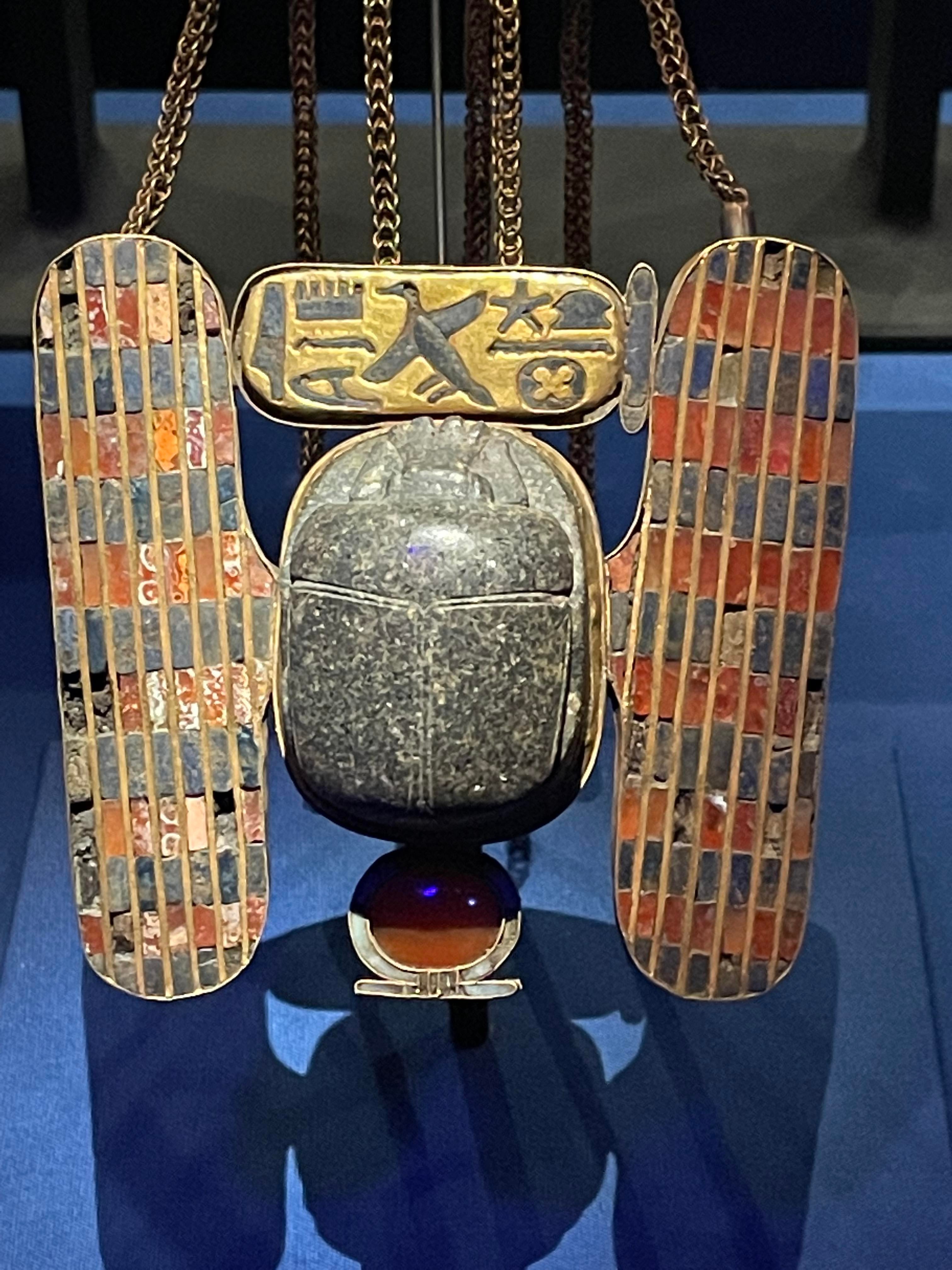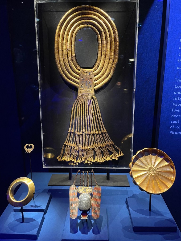 At one point, I came across a magnificent golden necklace. This one, the Gold of Valor belonging to Psusennes the First, a pharaoh of the 21st Dynasty.