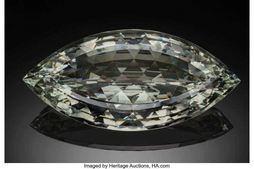 Another fun fact: Texas is the only state with its own official gem cut — the Lone Star cut, which forms a five-pointed star in the middle of the gem. Also, blue topaz is the Texas state gemstone. So, if there was one topaz that embodies both the pale blue color of Texas topaz (found exclusively in Mason County), and the Lone Star cut, it’s this 234-carat topaz.